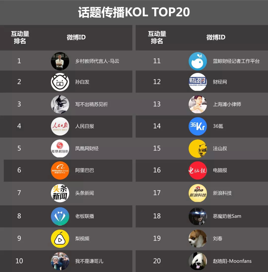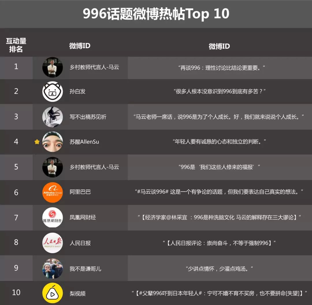 其中,互联网大佬、官方媒体、资深社评KOL们是引发话题传播裂变的源头。在传播互动量Top 20中,媒体就占到50%的比例;其他如@孙白发 @写不出稿苏见祈等引起高互动的KOL,多是专注于社会评论的资深媒体人,他们独到的观点引导大量的网友开始反思企业与员工的关系。