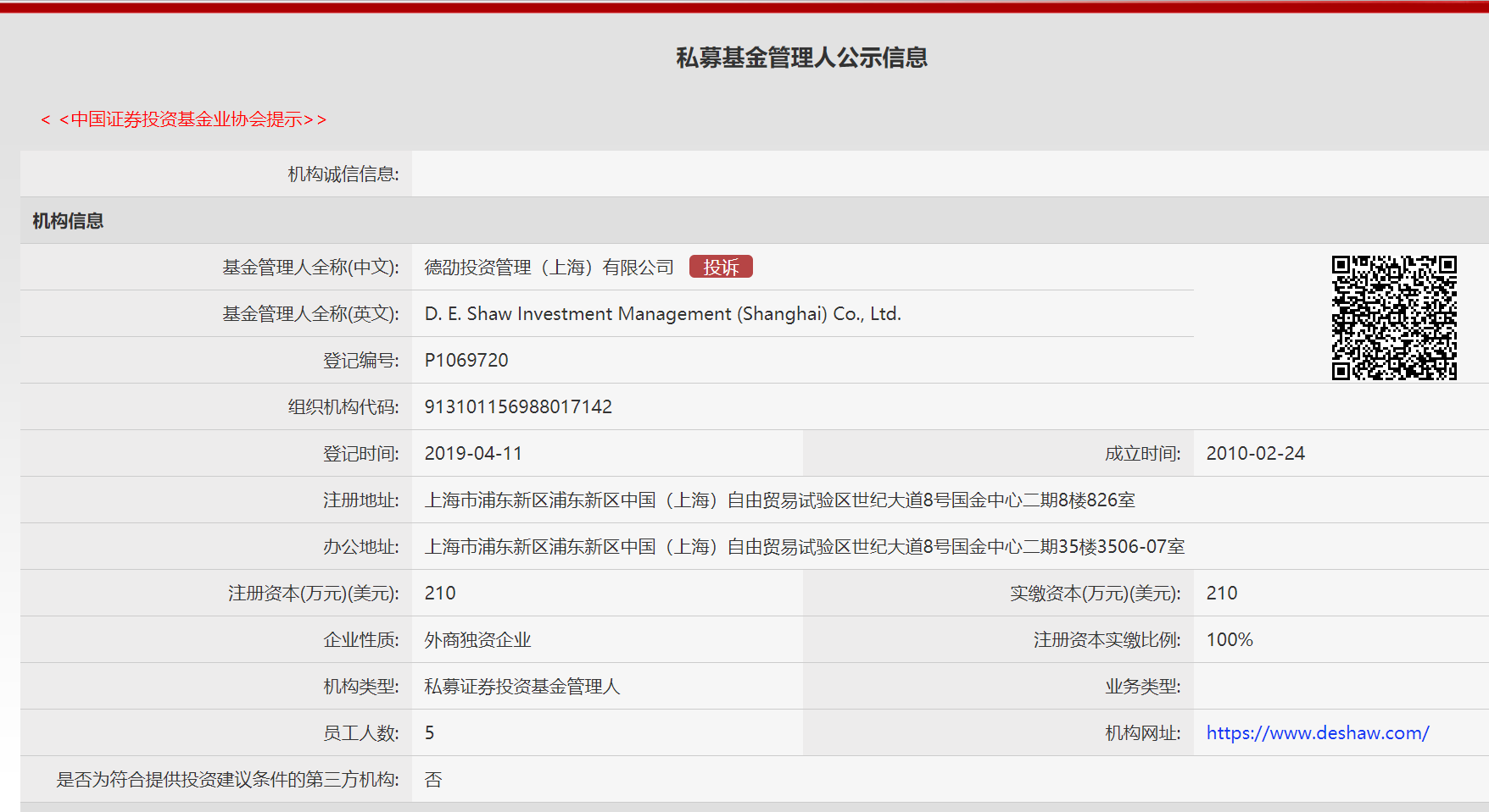 4月18日,界面新闻从中国证券投资基金业协会官网了解到,德劭投资管理(上海)有限公司已于4月11日完成备案登记,成为第19家进入中国市场的外资私募。