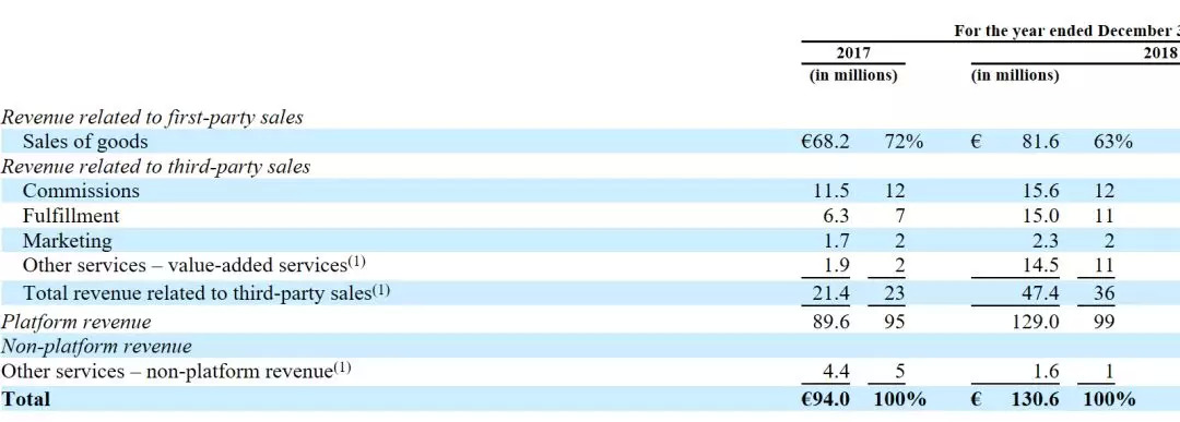 不过,收入结构则向我们展示了另一面。Jumia的收入由自营和第三方平台构成。2018年,自营收入达到8160万欧元,较2017年的6820万欧元增长19.6%,营收占比从72%下降至63%。自营业务贡献了更多的收入,这点似乎更像亚马逊的模式。