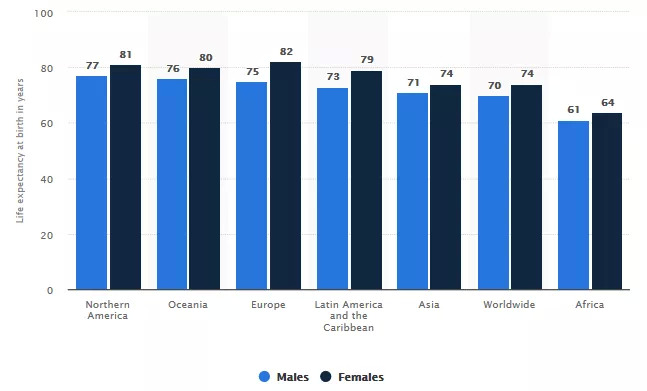 当然,凡事都可以从两面解读。互联网渗透率低可以视为潜力巨大的优势,也可以算是基础设施薄弱的缺点。18岁的年龄中位数当然可以理解为年轻,但解读成短命貌似也没错。根据Statista的统计,2018年非洲的人均预期寿命为61岁(男)和64岁(女),均比世界平均水平低10年左右。