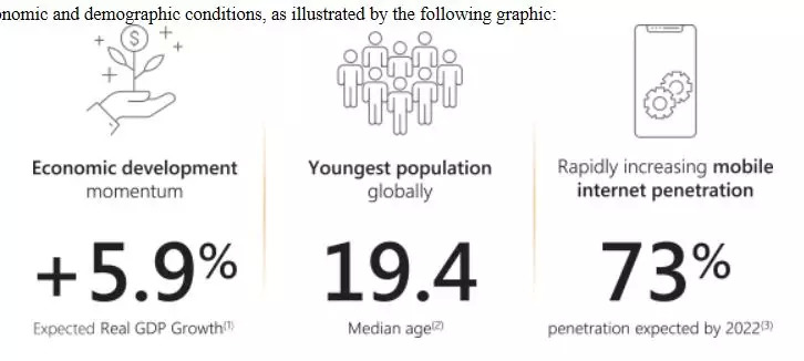 庞大的年轻用户更是一个巨大优势。预计2015年至2050年世界人口增长的一半将由非洲推动。尼日利亚有望在2050年成为世界第三人口大国,仅次于印度和中国。招股书显示非洲2015年的年龄中位数居然只有19.4岁。Jumia认为这将成为公司发展的巨大优势。因为出生在“网络”世代的年轻人在消费行为上将更靠近全球趋势,越来越多地在线上寻求获得更多元的食品、消费品和娱乐产品。