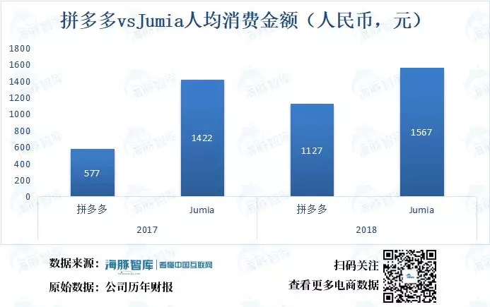 拼多多用户在2017年和2018年的人均消费金额分别为577元和1127元。就去年来看,双方用户的消费能力非常接近,不知道这是否意味着拼多多平台上的卖家有机会进军非洲呢?