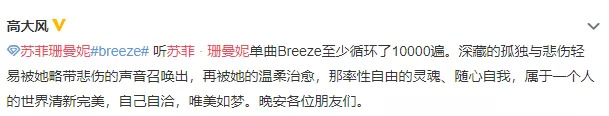 再一次得益于中国歌手的翻唱推广,苏菲·珊曼妮的中国演唱会合唱曲目,从那以后就多了一首《Breeze》。较之于赵雷思乡情结的改编,苏菲的原曲更加富有对逝去爱情的真实表达。就像是音乐人赵照的评价一般:自言自语的,都是真的。