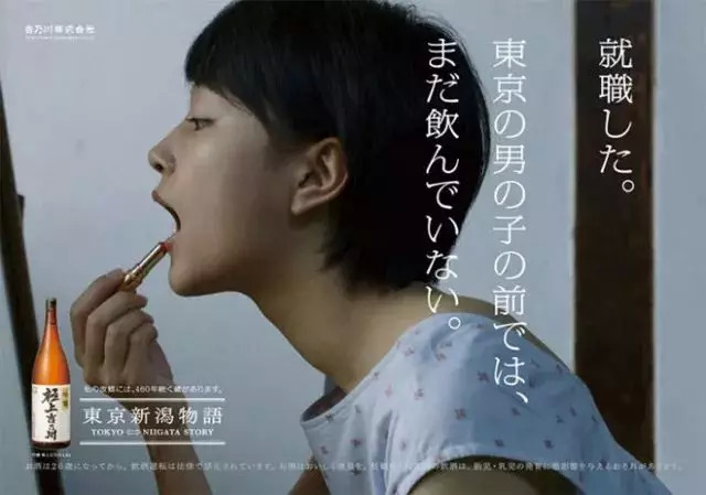 “快要工作了,在东京的男生面前,还从来没有喝过酒”。明明是酒的广告,文案却好像白开水一样平淡,这并不妨碍它精准地抓住女孩们与自己对话、和解的微妙情绪。