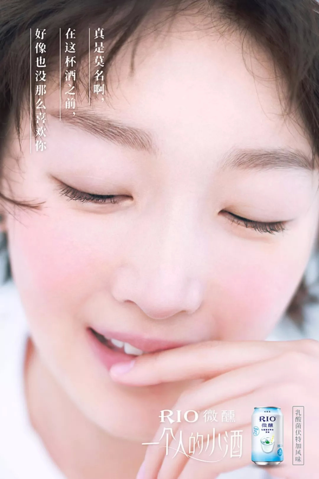 鸡尾酒品牌RIO就曾经推出过一组主题为“微醺恋爱物语”的海报。与烈酒不同,RIO希望能给用户带来“微醺”的感受,在文案的表达上,就采取了“与自己对话”体,让微醺与恋爱中暧昧的状态建立关联,从而让用户产生代入感。