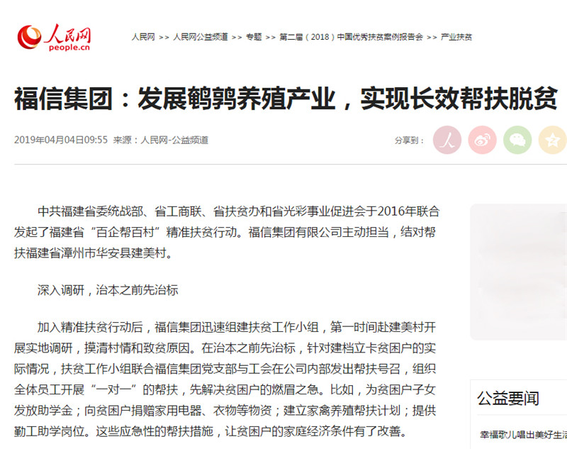 人民网发布《发展鹌鹑养殖产业,实现长效帮扶脱贫》扶贫案例