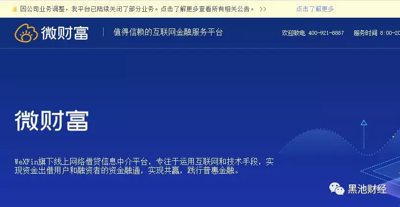 除了P2P业务,微财富还发展了基金代销、保险代销等业务,在中汇在线事件后,微财富元气大伤。网站目前已经停止运营,最新的数据显示日期为2018年10月31日。网站累计交易金额40.57亿,借贷余额367.65万。