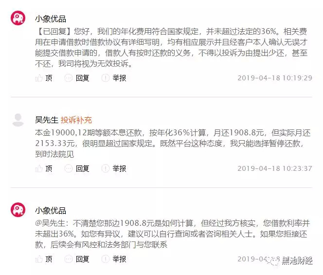 聚投诉上小象优品对投诉的回复