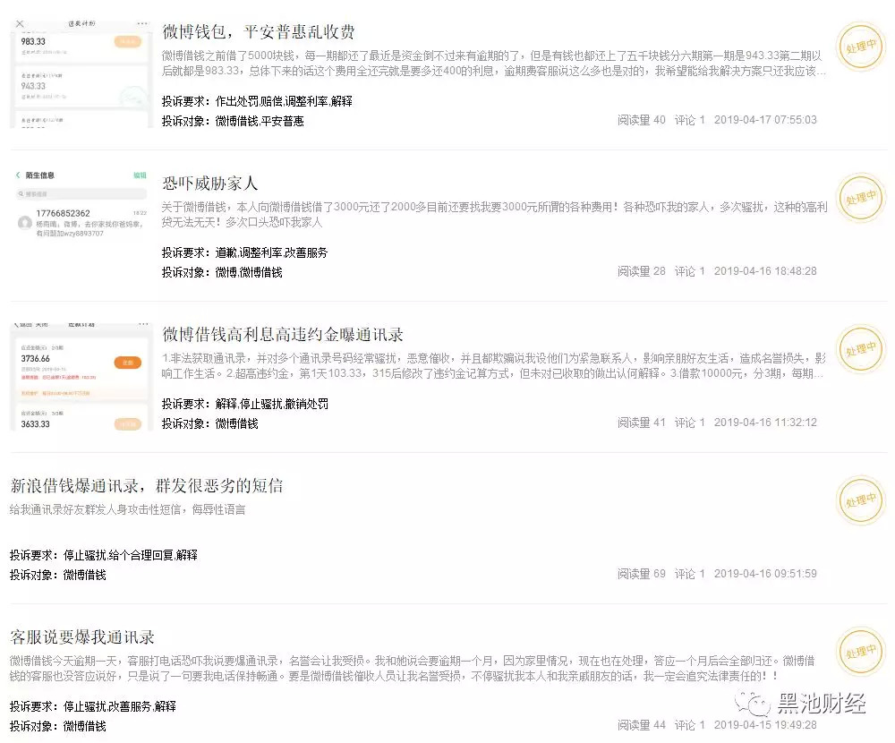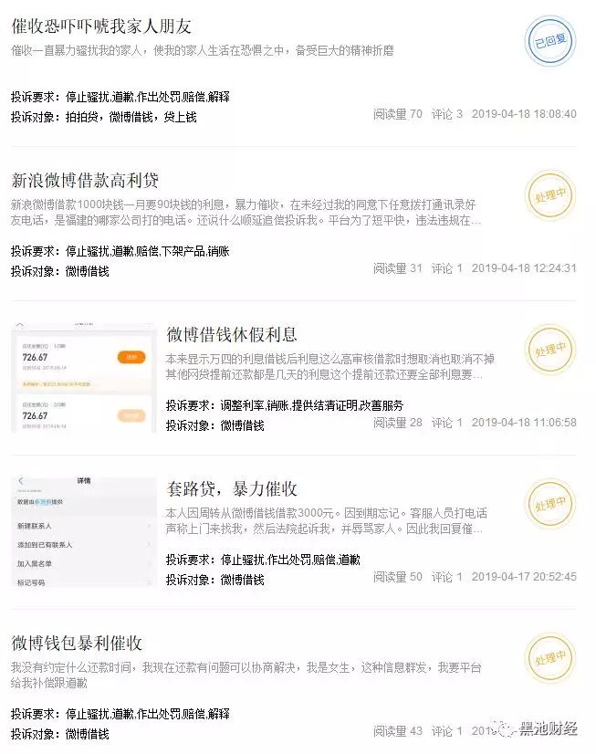 聚投诉上对微博借钱的投诉