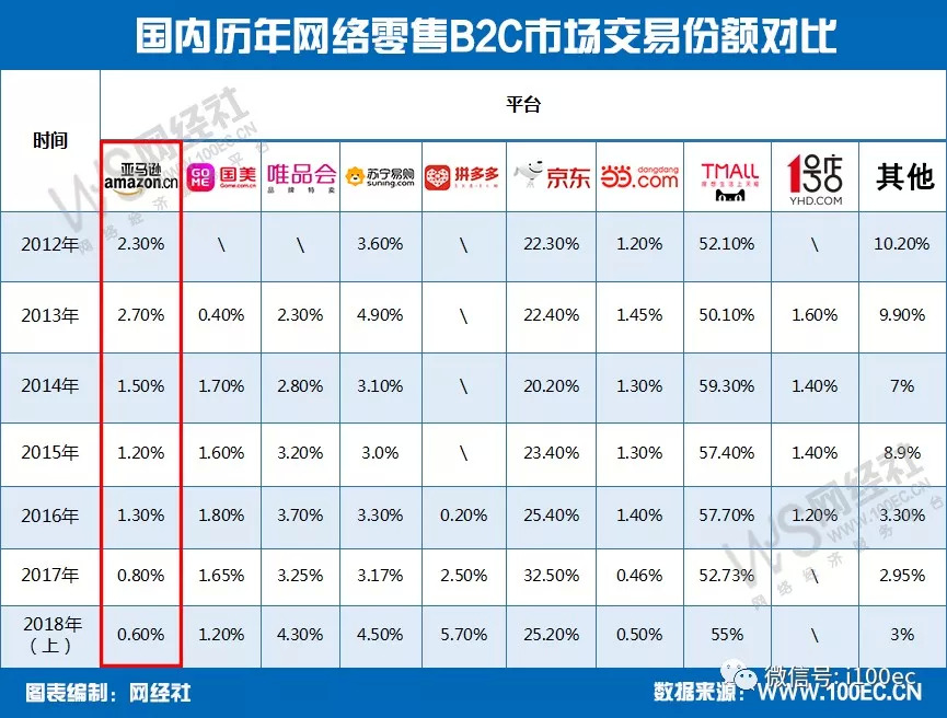 1.亚马逊在华15年很难在华“突出重围”。然而,市场扩张速度却远不及众多中国电商的快速崛起。到目前为止,天猫、京东、拼多多、唯品会、苏宁易购、网易考拉和严选等几百家大小电商平台,已将中国电商B2C的“蛋糕”几近瓜分殆尽,市场格局基本成型,亚马逊很难在华“突出重围”。