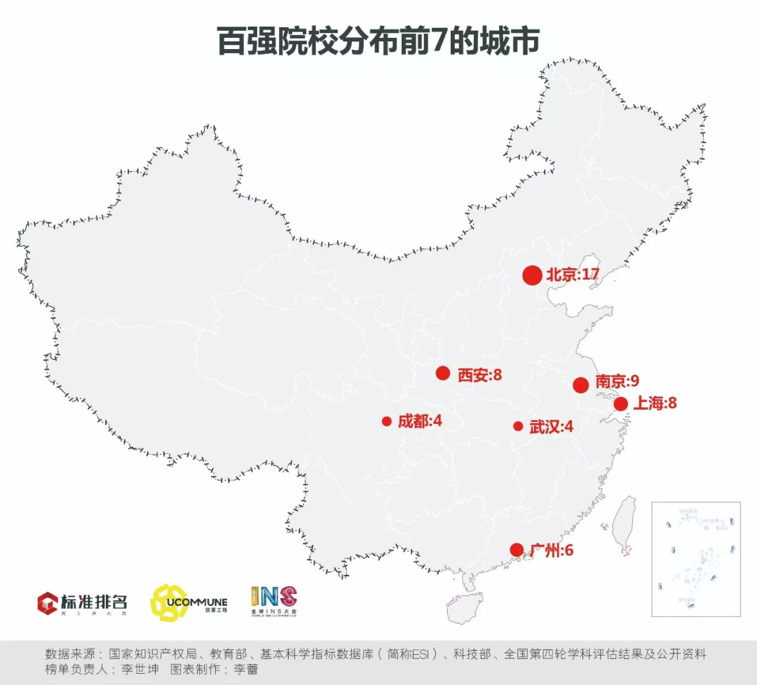如果以城市分布来看,北京依然是上榜大户,有17所高校入围百强。南京作为高校数量、211工程、双一流大学等数量居多的城市,有9所大学入围百强,算是正常。西安这两年力推全球硬科技之都建设,并且广招人才,一定程度上也刺激了当地高校的发展。此番西安有8所高校入围百强。