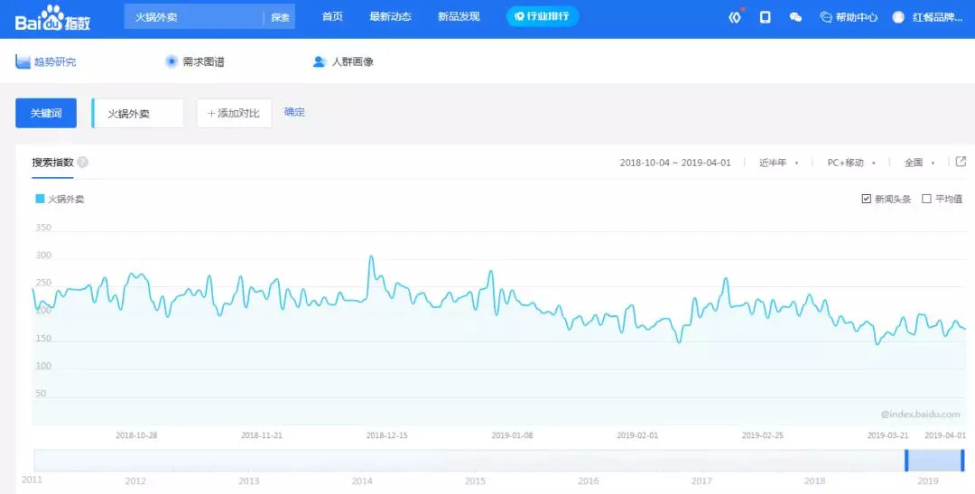 火锅外卖已经成为市场新兴热门的选择。从百度指数半年的情况来看,火锅外卖的搜索指数平均保持200点。人们对外卖火锅的热情有增无减,市场越来越大,行业也充满朝气。