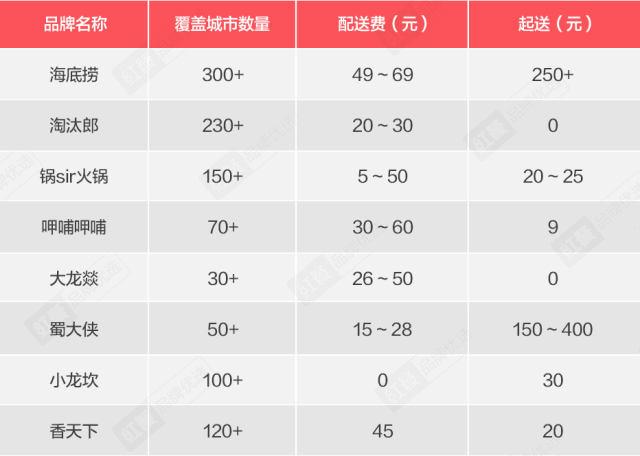 △部分做火锅外卖的品牌统计(红餐网根据公开资料整理)