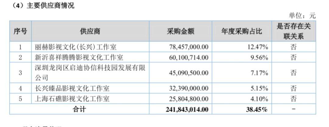 而影视业务、演出业务与艺人之间的关联,就让公众对开心麻花的艺人经纪甚为好奇。财报数据显示,2018年开心麻花共向5家供应商采购费用达到2.42亿,占年度采购总额的38.45%,其中4家供应商为明星个人工作室。