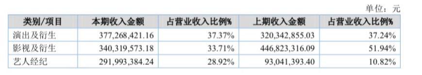 开心麻花2018年年度报告显示,2018年开心麻花演出及衍生业务营收达到3.77亿,占总收入37.37%,影视及衍生收入达到3.40亿,占比33.71%;艺人经纪收入达到2.92亿,占比28.92%。公司收入结构相比去年出现了明显的变化。