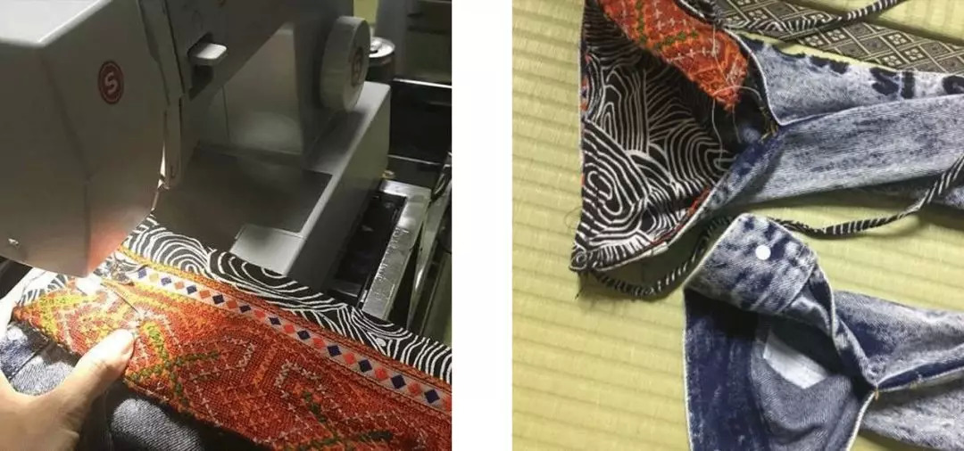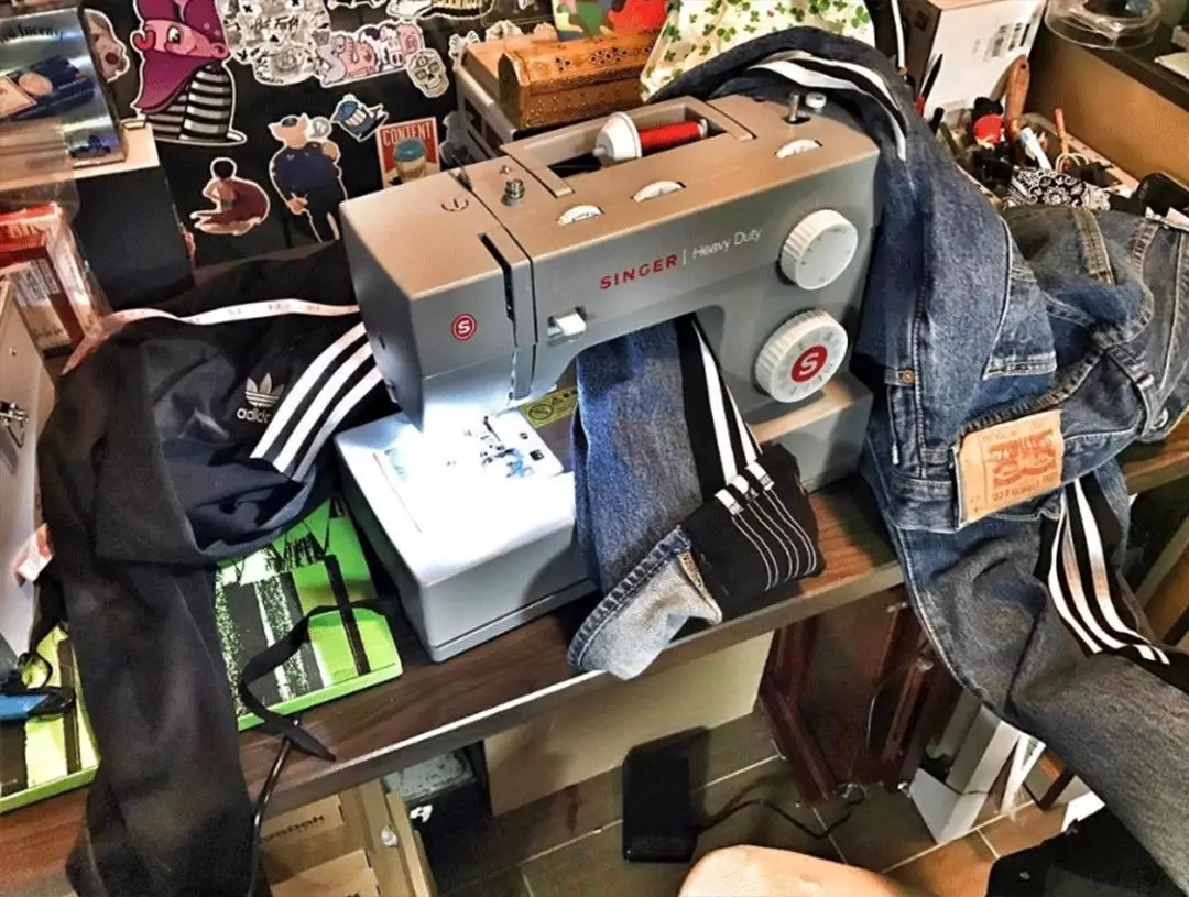 当然啦,更复杂的也有。他最喜欢的就是改造牛仔裤,开口、加装饰、画涂鸦,难不倒他的。