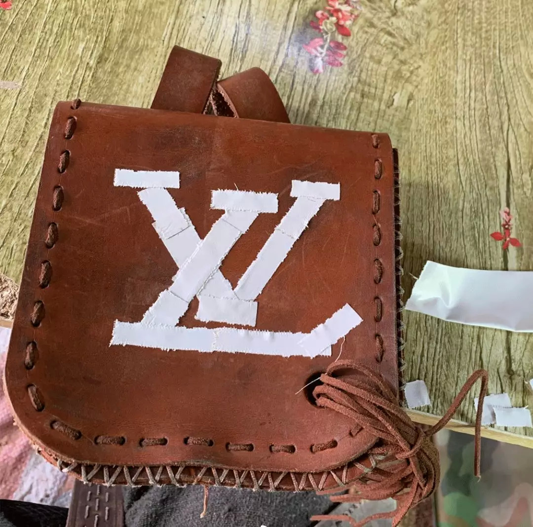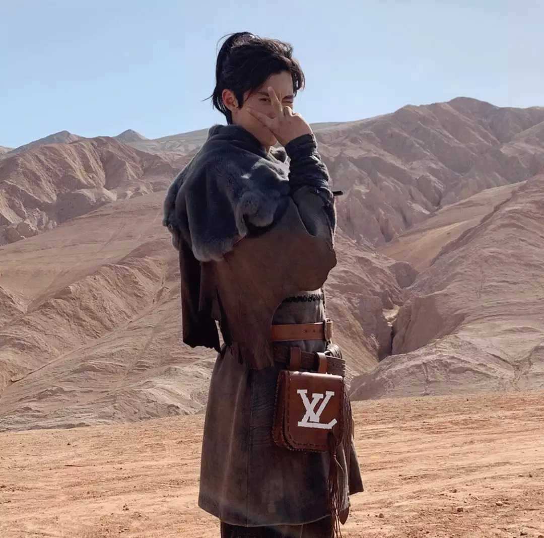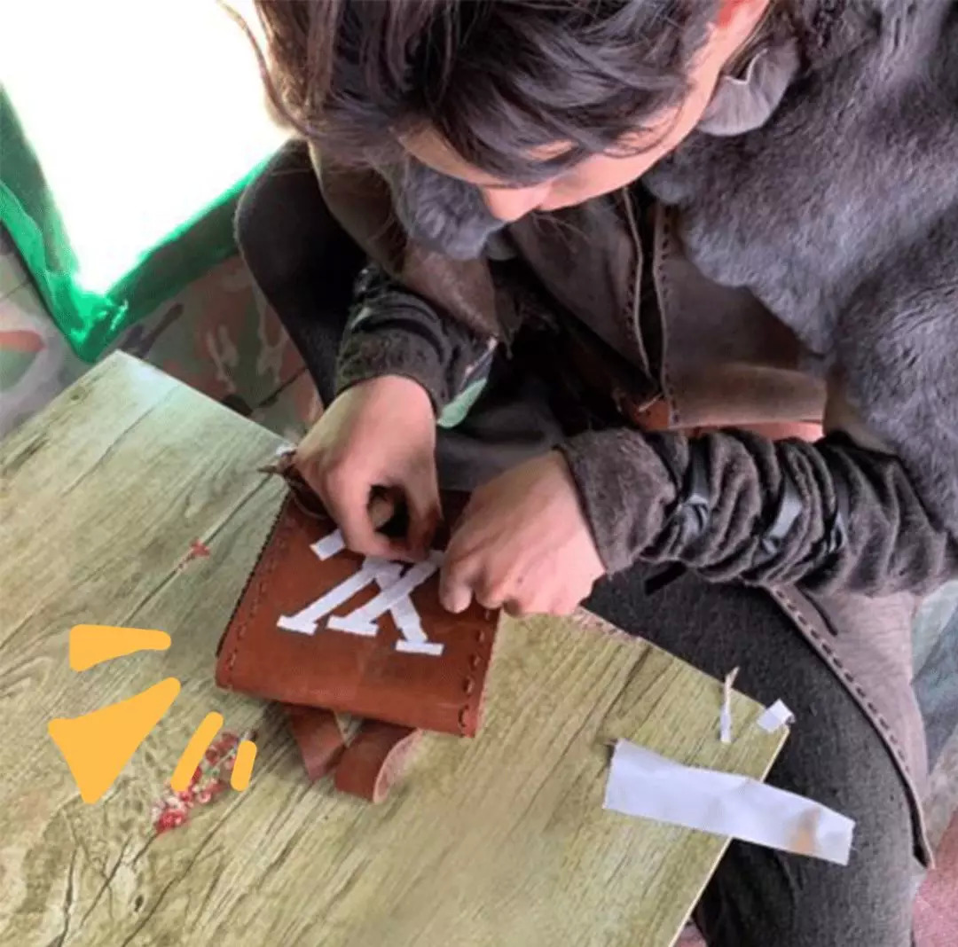 王鹤棣绝对是开了新手挂,最近在大西北拍戏,居然手工做了个LV包包,