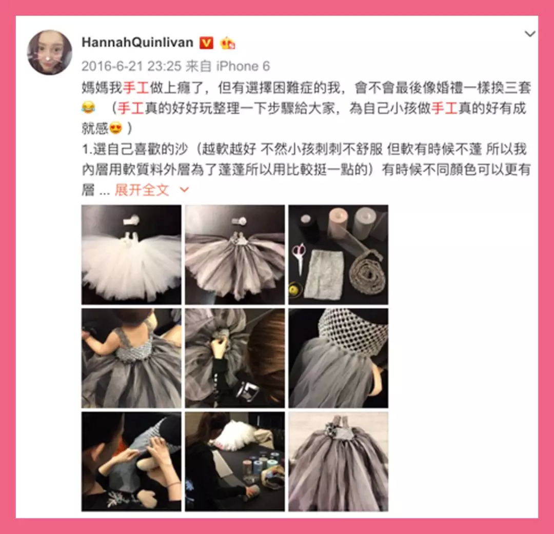 还有另一位妈妈昆凌,有了小公主之后好像解锁了手工技能……居然自己纯手工做了女儿的小婚纱出来,真·高定款!