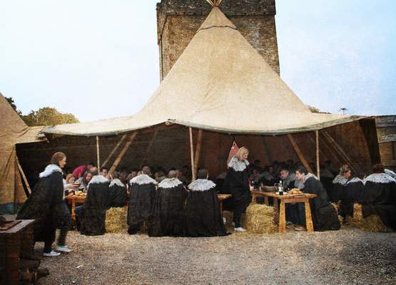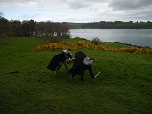 夕阳西下时,两个古装武士在栾河城下持剑厮杀,另一个家伙正手持无敌兔(5D2)认真拍摄。这是三位来自洛杉矶的剧迷,短发的那个,职业身份是DJ,最近正在贝尔法斯特的俱乐部打碟。相机回放的慢镜效果已经相当不错,堪比HBO预告片。