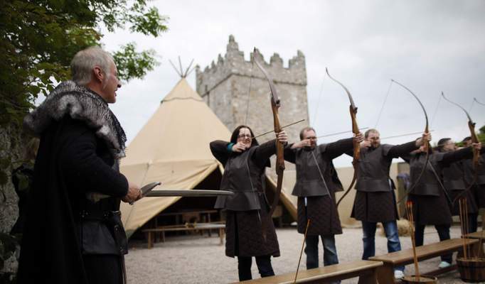 在用一段“如何建造临冬城”的VCR打发走学生们后,琼恩给我穿上后皮革的戏服,携上佩剑,来到射箭场。史塔克家族的长公子罗柏曾在这里指导弟弟布兰射箭,可那个凑热闹的好动小妹艾莉亚总是表现更好。靶场里的绝大多数短弓都能很轻易操作,并至少命中靶位,可与真实道具同款的长弓,就因缺少弓箭卡位,而得花上大得多的力气才能瞄准。真不知剧中演员是否都要经过一番魔鬼训练,才能上阵。