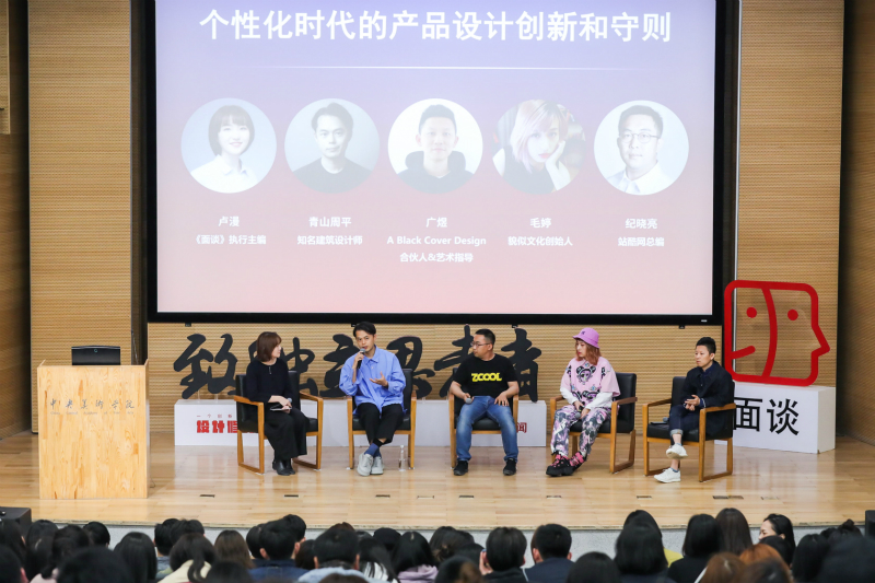 本次沙龙的圆桌主题为“个性化时代的设计创新与守则”,圆桌由《面谈》主编卢漫担任主持人,知名建筑设计师青山周平、站酷网总编纪晓亮、貌似文化创始人毛婷、A Black Cover Design 合伙人&艺术指导广煜参与了讨论。