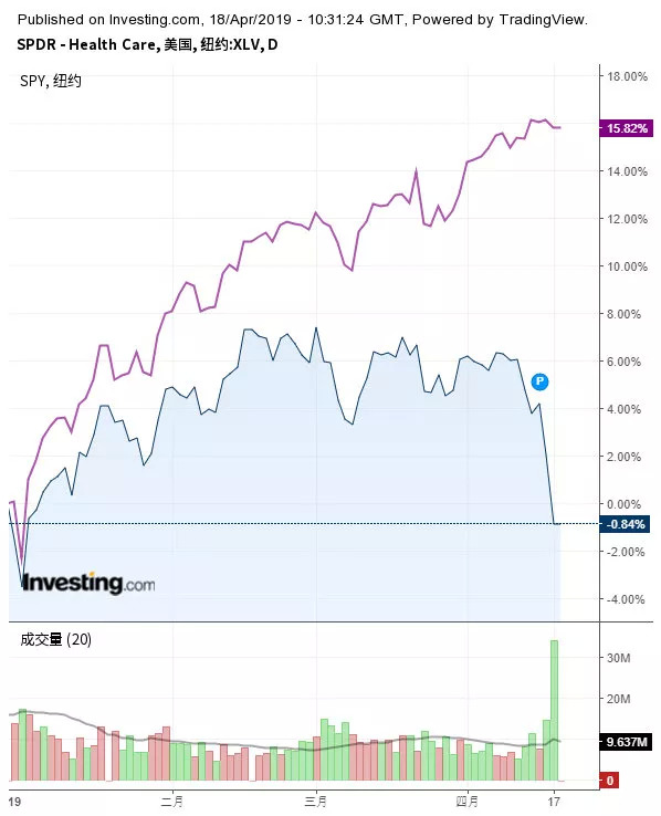 事实上,去年还是11大板块中表现最佳的医疗保健股,今年以来成为了唯一录得亏损的行业。SPDR医疗保健精选ETF累计下跌超过0.8%,而同期SPDR标普500 (NYSE:SPY)上涨15.8%。
