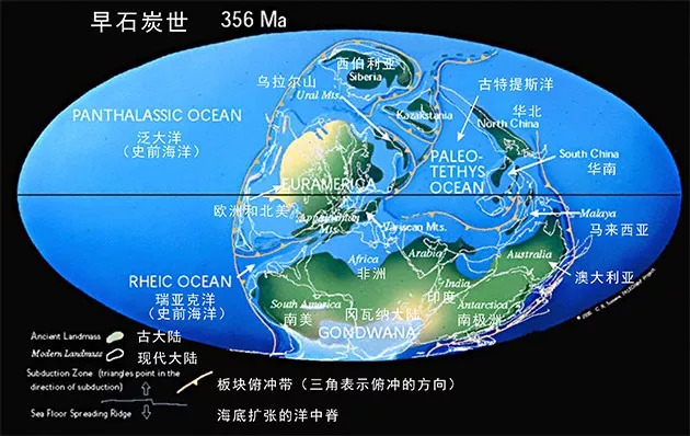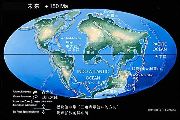岩石圈演化图(356 Ma-未来150 Ma,Scotese, 1997)