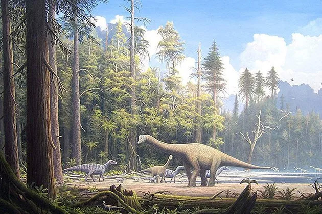 (4)第四次大灭绝事件:2.0亿年前,除鱼龙外所有的海生爬行动物灭绝,一半海洋物种消失。陆地所有迷龙和大多数合弓类动物消失。槽齿目动物灭绝了,幸存的植物有针叶类和苏铁。也正是这次灭绝事件,给恐龙提供了广阔的生存空间,使得恐龙成为接下来一段时间地球的霸主。