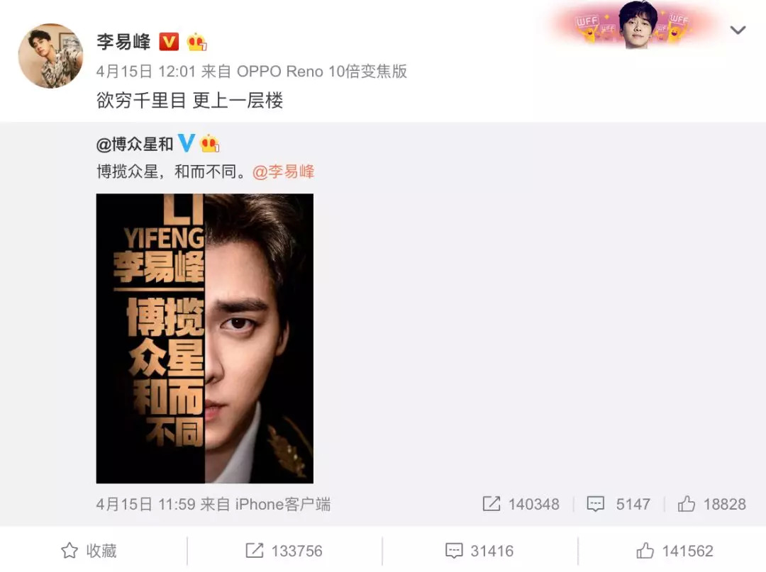 就说最近,李易峰脱离欢瑞世纪,加盟成立仅两个月的博众星和;吴亦凡一曲《大碗宽面》成功自黑,衬托得蔡徐坤告B站就显得年轻急躁了些;而鹿晗新专辑销量依然强劲,生日亦声势不减,倒让硬糖君对公布恋情后的flop预言自觉挺打脸。