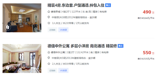 (金沙湖二手房挂牌信息/来源:链家网)