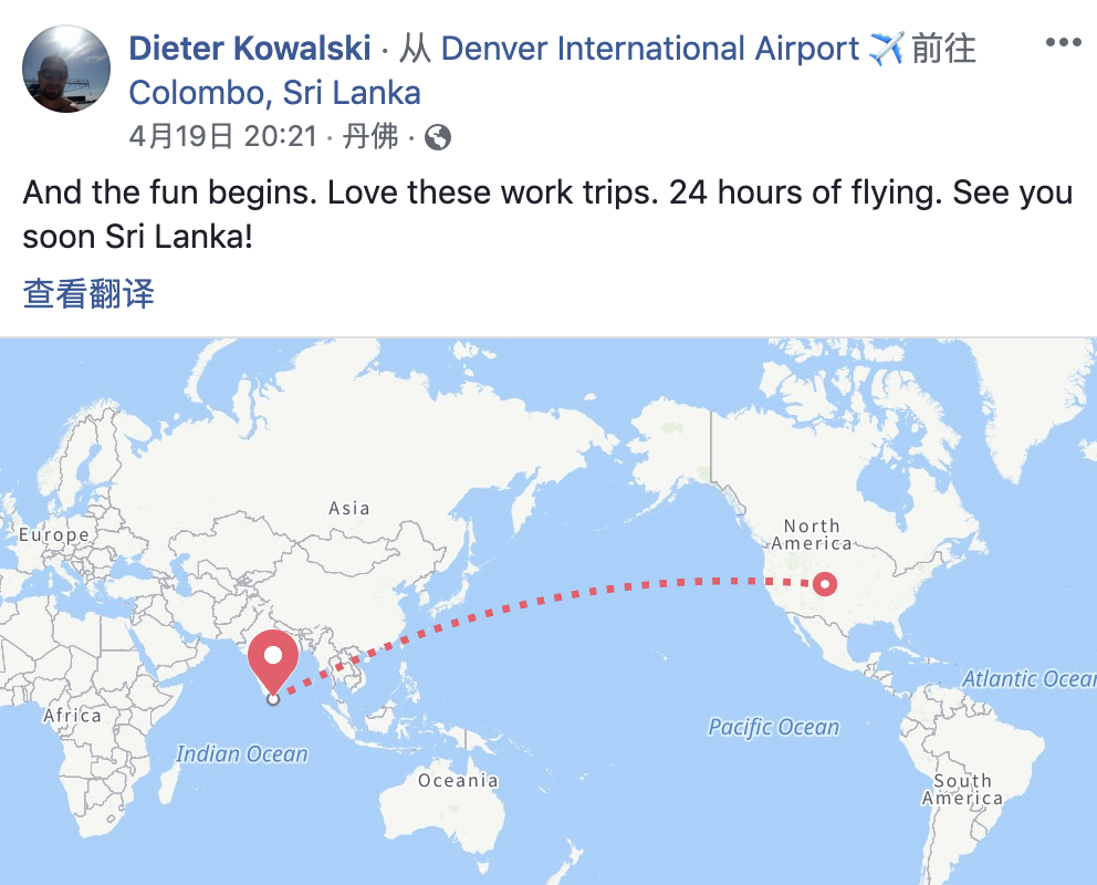 迪特尔的脸书页面也停留在了4月19日。起飞前,他写道:“好玩的要来了。特别爱出差。要飞24个小时。斯里兰卡待会见!”下方,上百人留言哀悼,写道:“我的朋友,一路走好。”