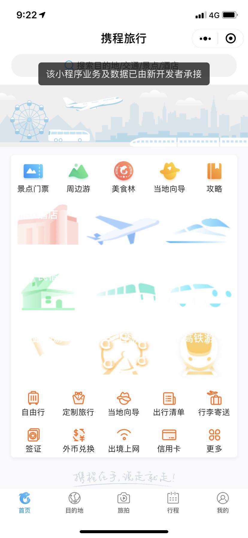 界面新闻在9点20左右于携程App上查找航班与酒店信息,发现页面异常,未能显示搜索结果。携程网页版正常。在携程小程序上搜索机票,也未能显示搜索结果。打开小程序时,页面显示“该小程序业务及数据已由新开发者承接”。