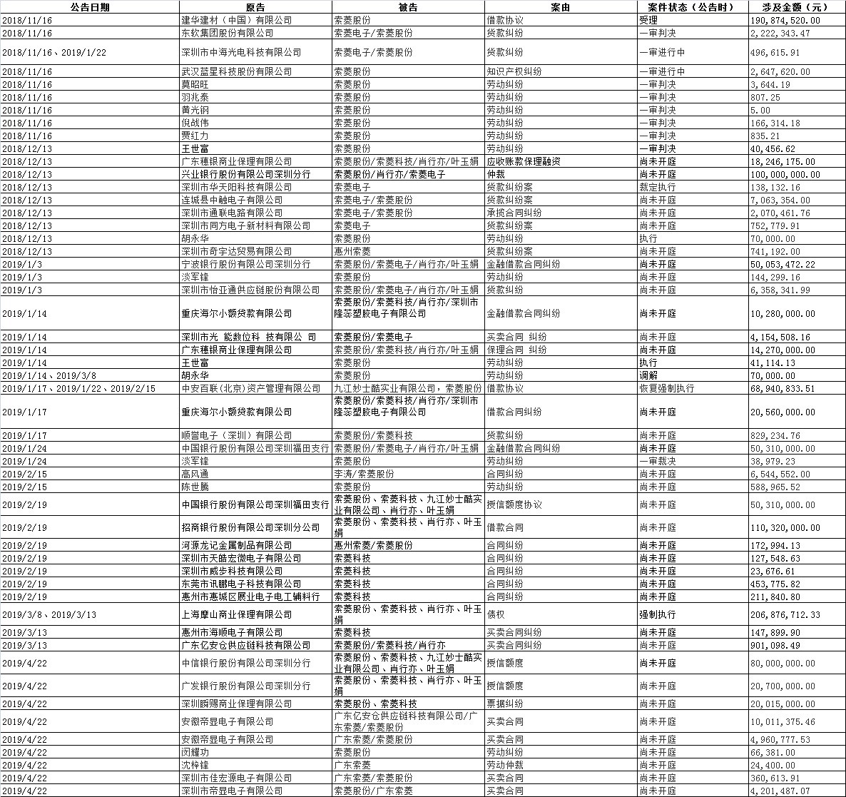 财联社曾于2018年12月14日报道《索菱股份身陷多宗重大诉讼 涉案金额逾2亿》,首次追踪索菱股份诉讼纠纷缠身的情形。据记者此后持续关注,索菱股份近5个月身涉诉讼、仲裁金额合计高达10.69亿元(不完全统计)。
