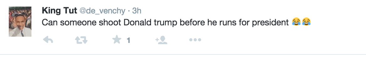 Twitter网友King Tut甚至希望有人能杀了特朗普: