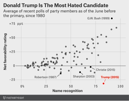 这也让特朗普成了美国历史上最招人恨的美国总统候选人——有数据为证: