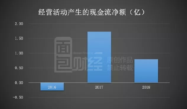 从现金流角度来看,公司近三年经营活动产生的现金流量净额分别为-0.26亿、1.73亿以及0.80亿,期间波动较大且2018年有下降的趋势。