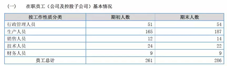 截至2018年底,公司拥有员工286名,其中生产人员和行政管理人员的占比最大。