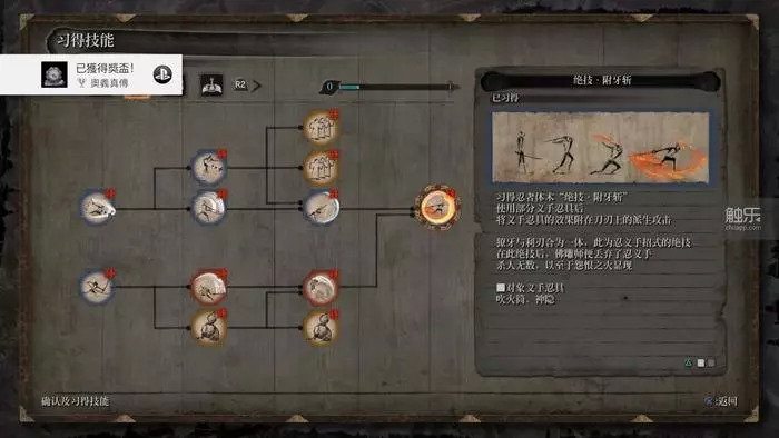 狼当然也拥有一定刚正面的能力,这就引出了本作的另一重大变革——战斗系统的创新。和潜入大量借鉴《天诛》不同,本作的战斗几乎是完全原创的,完成度非常之高,让人惊叹。