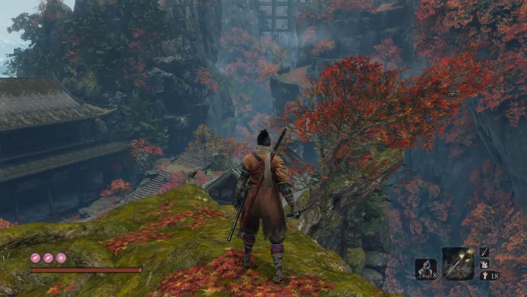 《只狼》的场景种类比较丰富,有室内有室外,有人文有自然,然而各场景之间的关联做得一般,欠缺“魂”系列那种不同场景或明或暗的千丝万缕的联系。