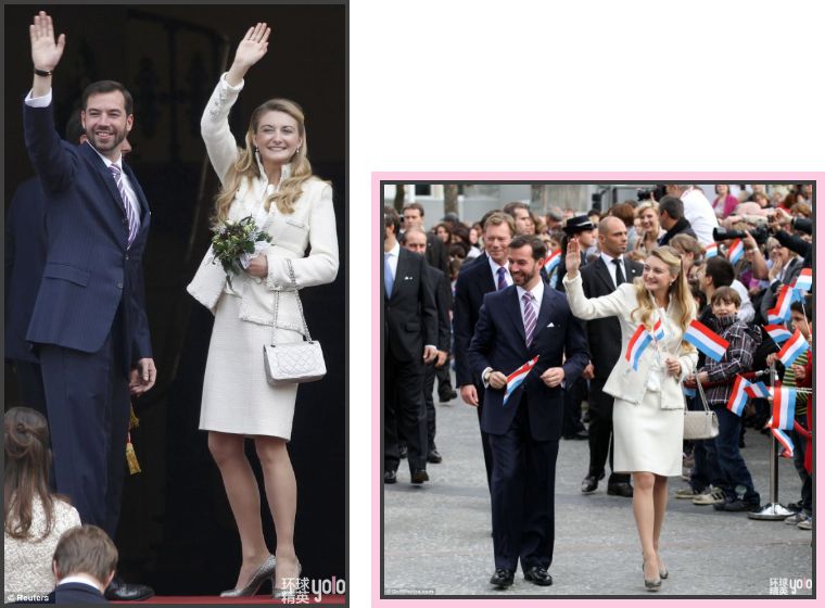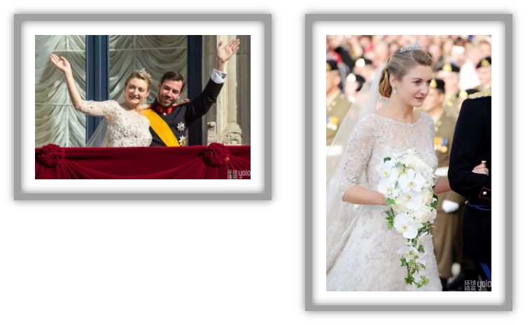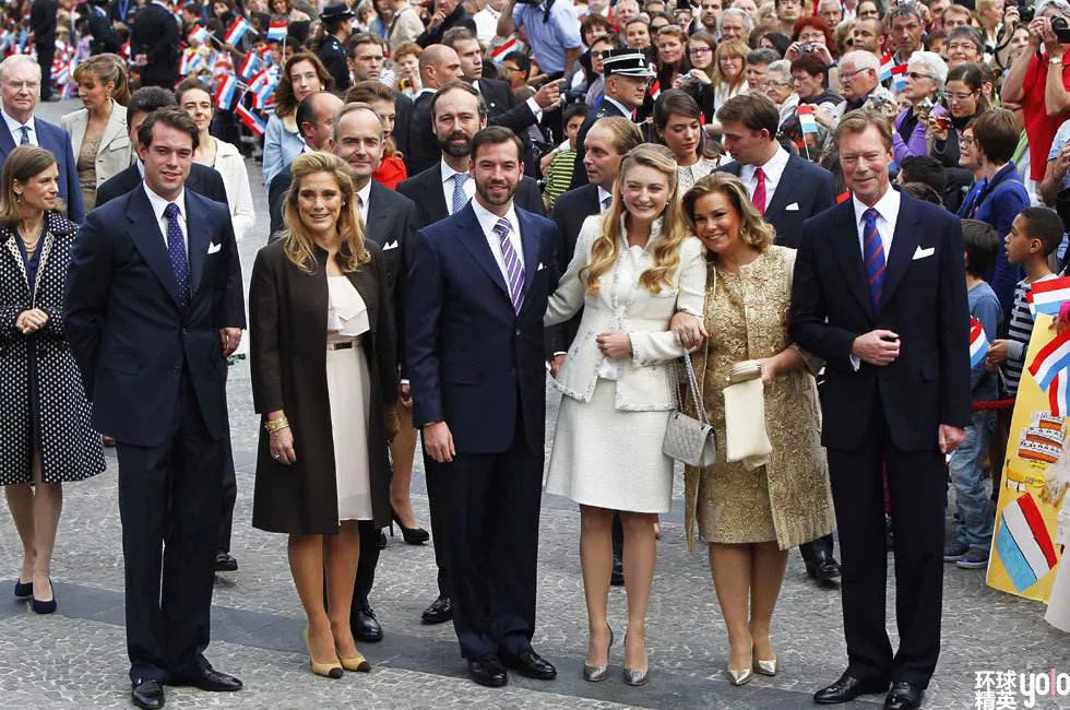 2012年10月20日,大公储纪尧姆在圣母大教堂迎娶比利时女伯爵斯蒂芬妮。斯蒂芬妮头顶白纱,戴着家传皇冠,身穿一袭镂空蕾丝拖地纱裙走向教堂,教堂钟声在整座城市回响。前来出席婚礼的宾客也都是重量级人物,毕竟这种“门当户对”的正统王室血统的结合在欧洲王室很少见,而目前只有三对王储夫妇皆具有王室血统。