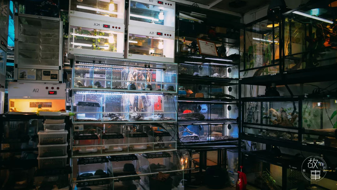 店主人肥宝是土生土长的广州人,这个留着长胡子的前职说唱歌手自小就对爬宠情有独钟。他一直记得买的第一只爬宠是一只叫「红玫瑰」的蜘蛛。后来慢慢也就越养越多,对于一个从小养鱼都会死掉的人来说,能养活小动物对肥宝来说是件太过于有成就感的事。