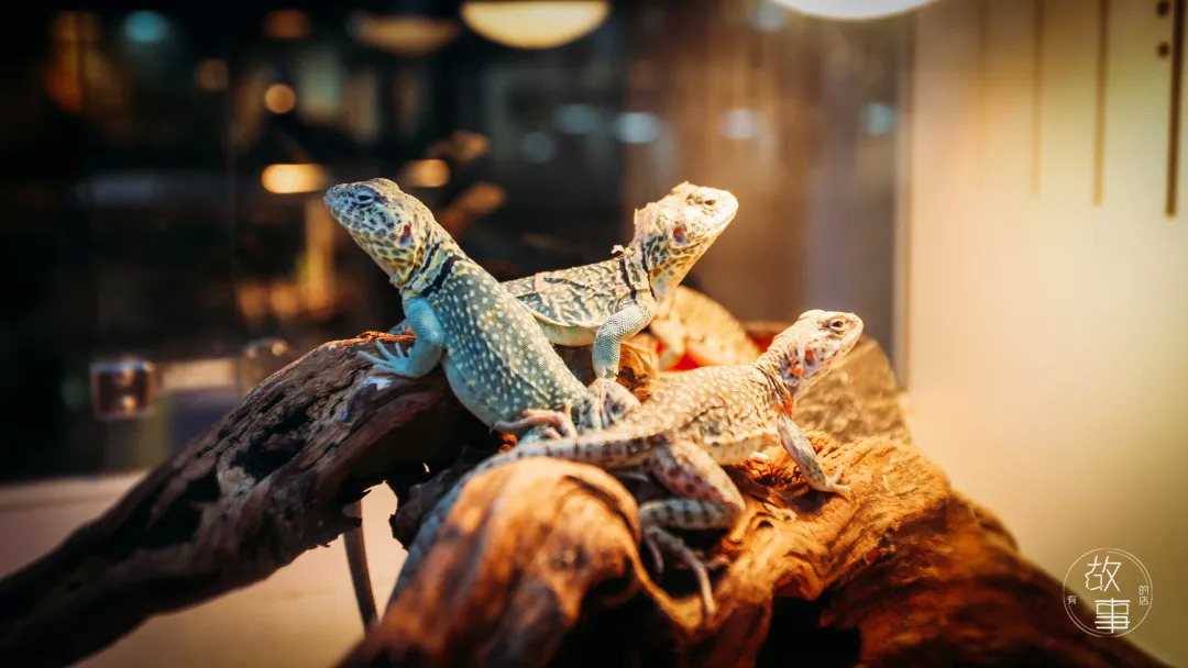 这些常在《动物世界》看见的小动物,被根据各自习性放在一个个玻璃掌柜里。来自沙漠的被铺上了细沙,来自雨林的一定要放上绿植。日行蜥蜴需要射灯伪装成「小太阳」,来补充钙质。但是温度一定要把握得当,不然会一不小心晒死。