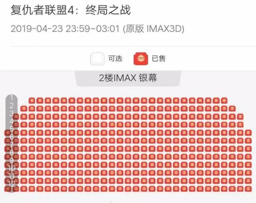 未映先火,从定下首映日期开始,《复联4》电影票就变得一票难求。预售刚开启,各大影院的座位就迅速被一片“人民币红”覆盖。