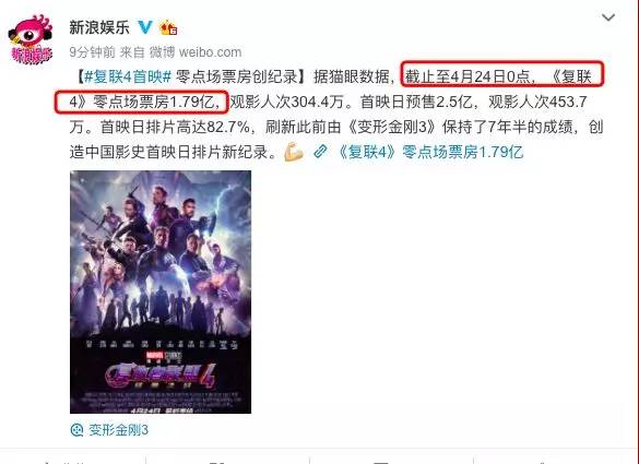 截至今日凌晨,《复联4》已经斩获零点票房1.79亿,远超当年《速度与激情8》创下的6270万的午夜场票房纪录。而《复联4》的首映排片高达82.7%,又直接打破七年前《变形金刚3》72%的首映排片纪录。