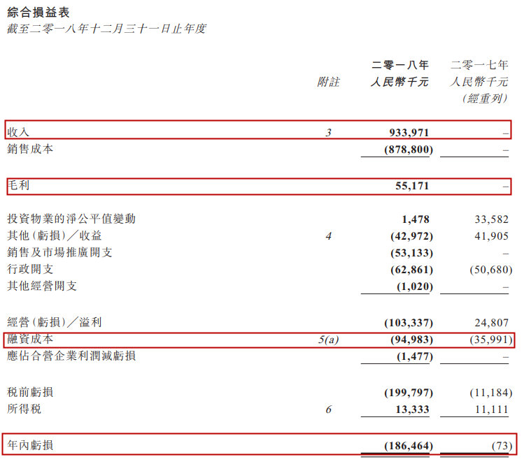 △三盛控股2018年综合损益情况(来源:三盛控股年报)