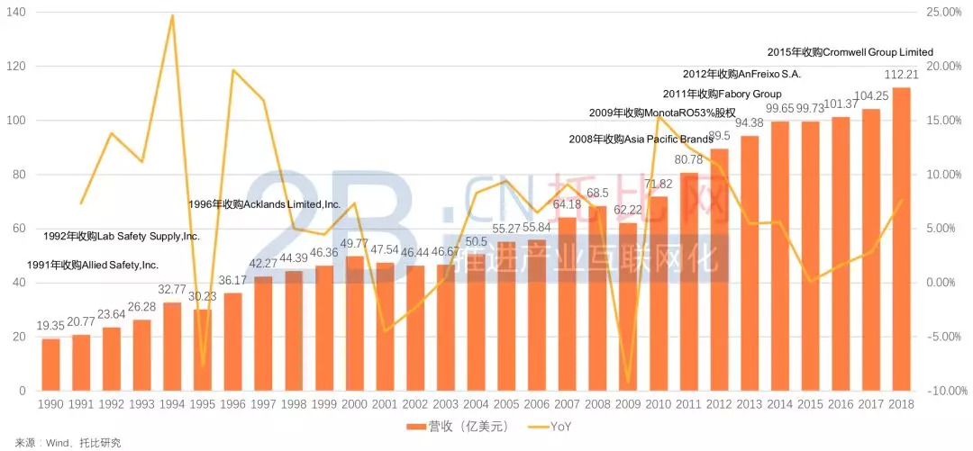 1)1990年,固安捷收购了Allied Safety,Inc. ,标志着固安捷正式进入工业安全用品分销领域;