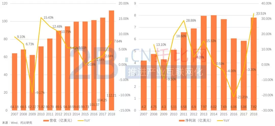 2018年公司营收112.21亿美元,同期增长8%,利润8.23亿美元,同期增长32%。目前市值约170亿元人民币,全球市占率4%。