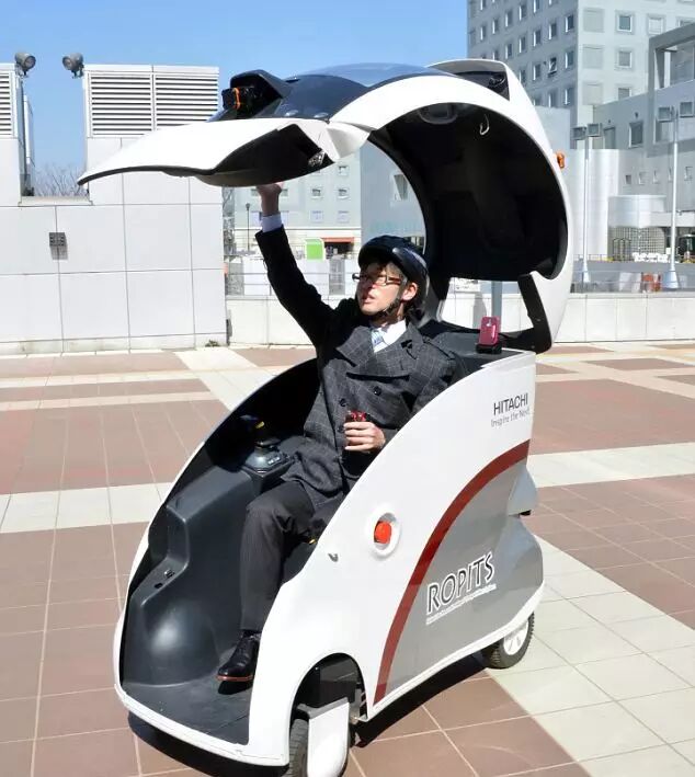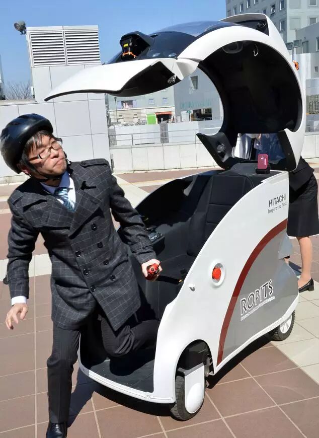 日立推出的这款机器人汽车全名为“个人智能交通系统机器人(简称Ropits)”,能够自动接送乘客,而且乘坐者无需驾照;如果遇到紧急情况,乘客可以用车内的摇杆对汽车进行临时控制。这种小巧的汽车对于那些有行动困难的人们来说比较适用,尤其适用于行动不便的老人。