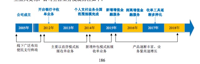 收单业务前五大客户中,银行及保险是公司的最重要客户,按照占主营业务收入比例来看,2018年前五大客户中,银行和保险各占其二,2017年,前五大客户名单中占比情况亦然。
