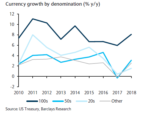 Joseph Abate, "Paper: All about the Benjamins", Barclays Research, 28 February 2019
